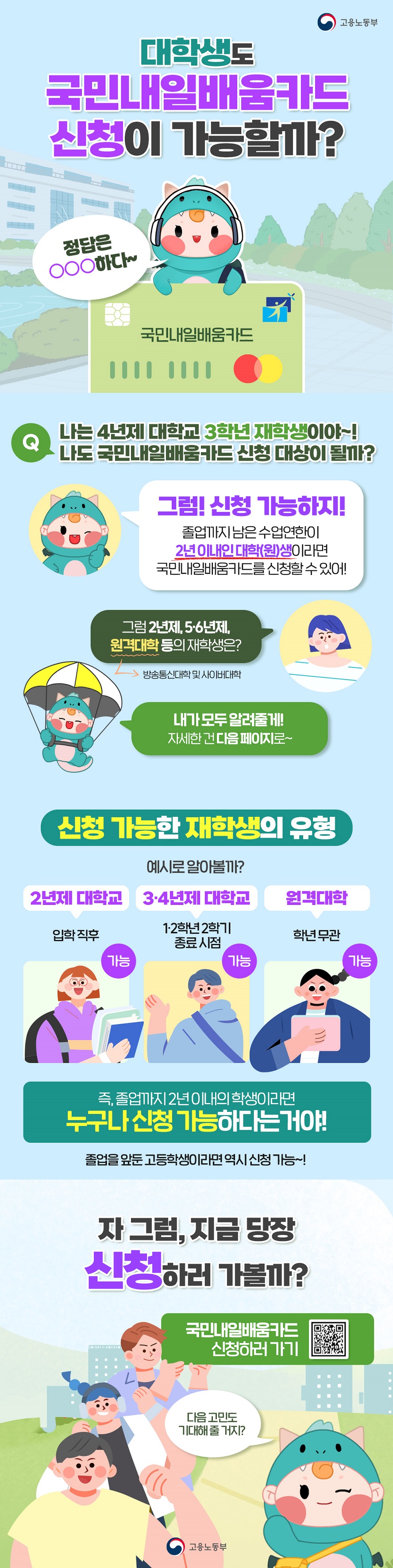 국민내일배움카드는 구직자, 재직자, 특고종사자 등을 대상으로 교육비를 지원하며, 취업과 직무능력 향상을 돕는 제도입니다. 직업훈련이 필요한 모든 국민이 대상이지만, 일부 제외대상(예: 공무원, 사립학교 교직원 등)이 존재합니다. 개인의 역량을 높이기 위한 다양한 교육 과정을 저렴하게 수강할 수 있습니다.