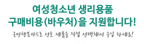 생리용품 지원 바우처는 국민행복카드를 통해 제공됩니다.